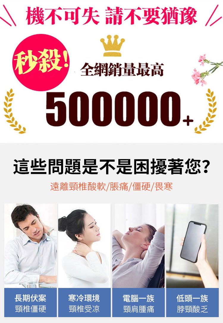 12分鐘前 艾草護頸脖套 有效恢復痙攣、肩膀酸痛。不中斷不悶熱。保暖透氣,耐磨不起球。此時點陣熱敷護理,暖暖的特別舒服! - 【陞級款9顆磁石(50x9cm)】15入組NT$1599 均價106/個!