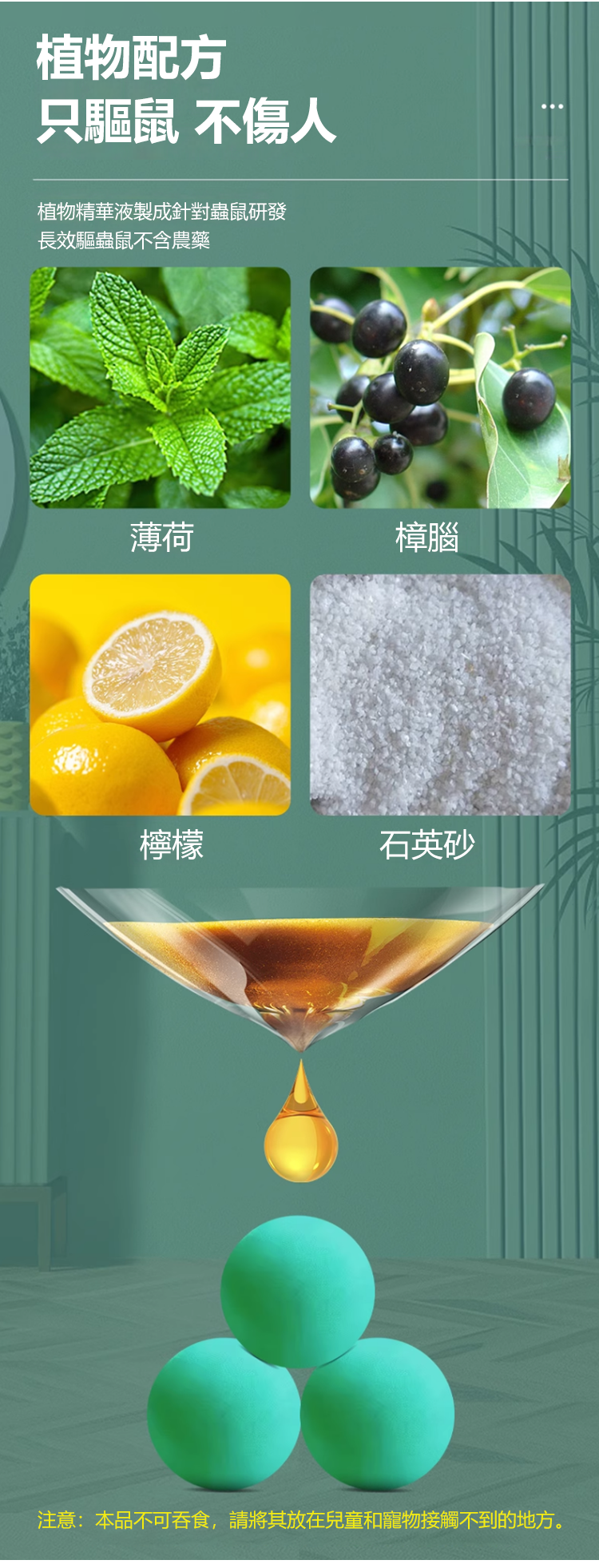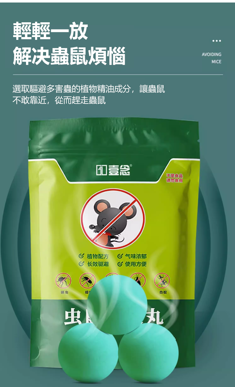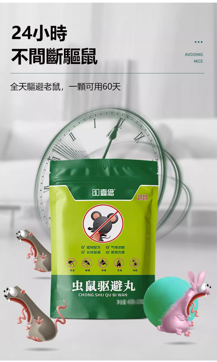 半小時前【驅蟲避鼠丸】消滅老鼠,驅蟲蚊蟲,讓你全年遠離老鼠和蚊蟲。對人和寵物無害,可放心使用! - 驅趕鼠蟲,安全一整年【狂殺特賣】十袋入組NT$1298