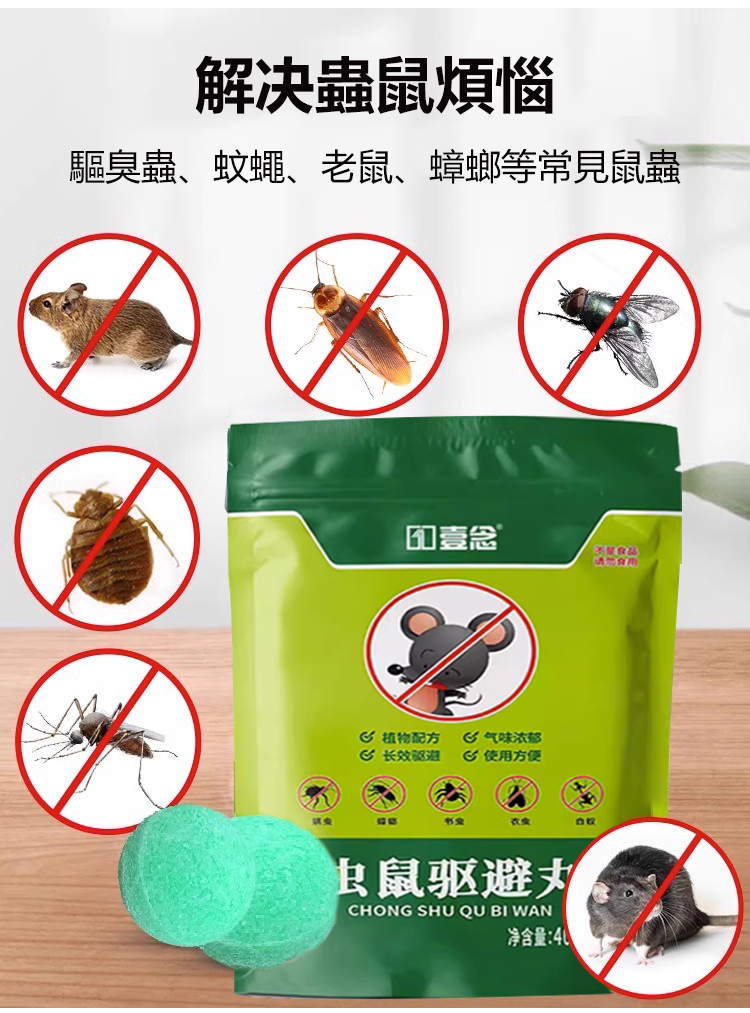 20分鐘前【驅蟲避鼠丸】消滅老鼠,驅蟲蚊蟲,讓你全年遠離老鼠和蚊蟲。對人和寵物無害,可放心使用! - 永絕鼠患【囤貨必備】十五袋入組NT$1498