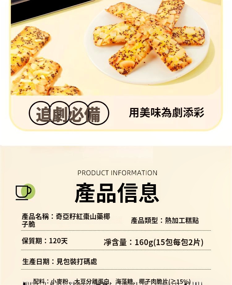 12分鐘前奇亞籽紅棗山藥椰子薄脆 - 【嘗鮮】買一送一 NT$799